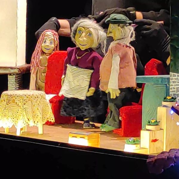 Ο παππούς και η γιαγιά κοντά στο αναμμένο τζάκι αρχίζουν τις ετοιμασίες για το γιορτινό τραπέζι. Η γιαγιά ξέρει όλα τα κόλπα των καλικάντζαρων και κάνει την κατάλληλη προετοιμασία για να εμποδίσει την επίσκεψή τους.